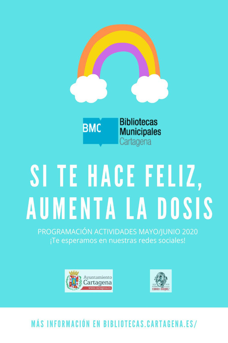 La Red deBibliotecas Municipales de Cartagena sigue apostando por una programación de actividades online de animación a la lectura para los meses de mayo y junio. Integrada en el ciclo que ha puesto en marcha el Ayuntamiento de Cartagena, “Cultura en casa”, cuyo objetivo es seguir disfrutando de actividades culturales desde los hogares, por ello las bibliotecas han desarrollado eventos orientados al público infantil y al adulto, que se llevarán a cabo a través de sus redes sociales.